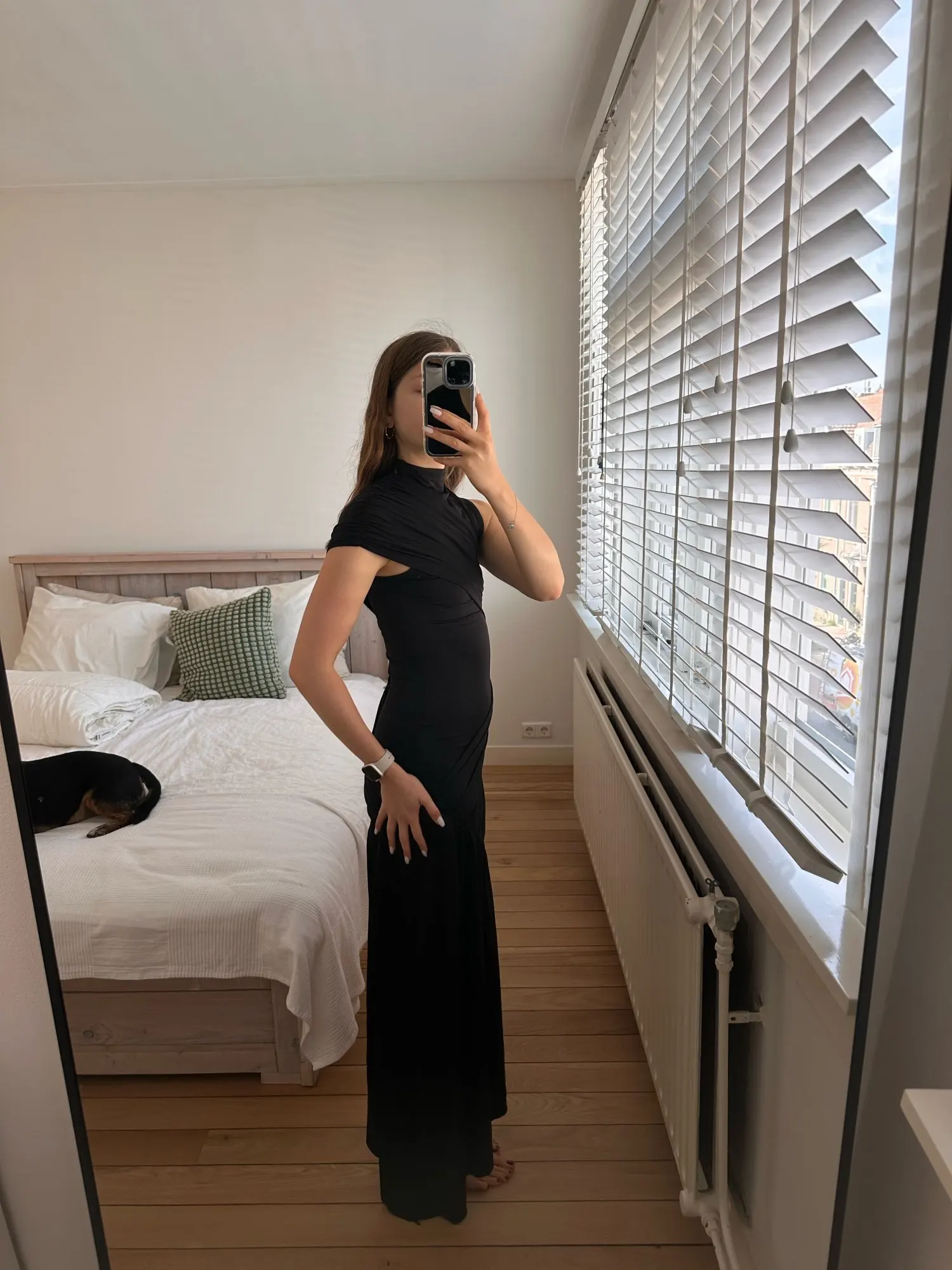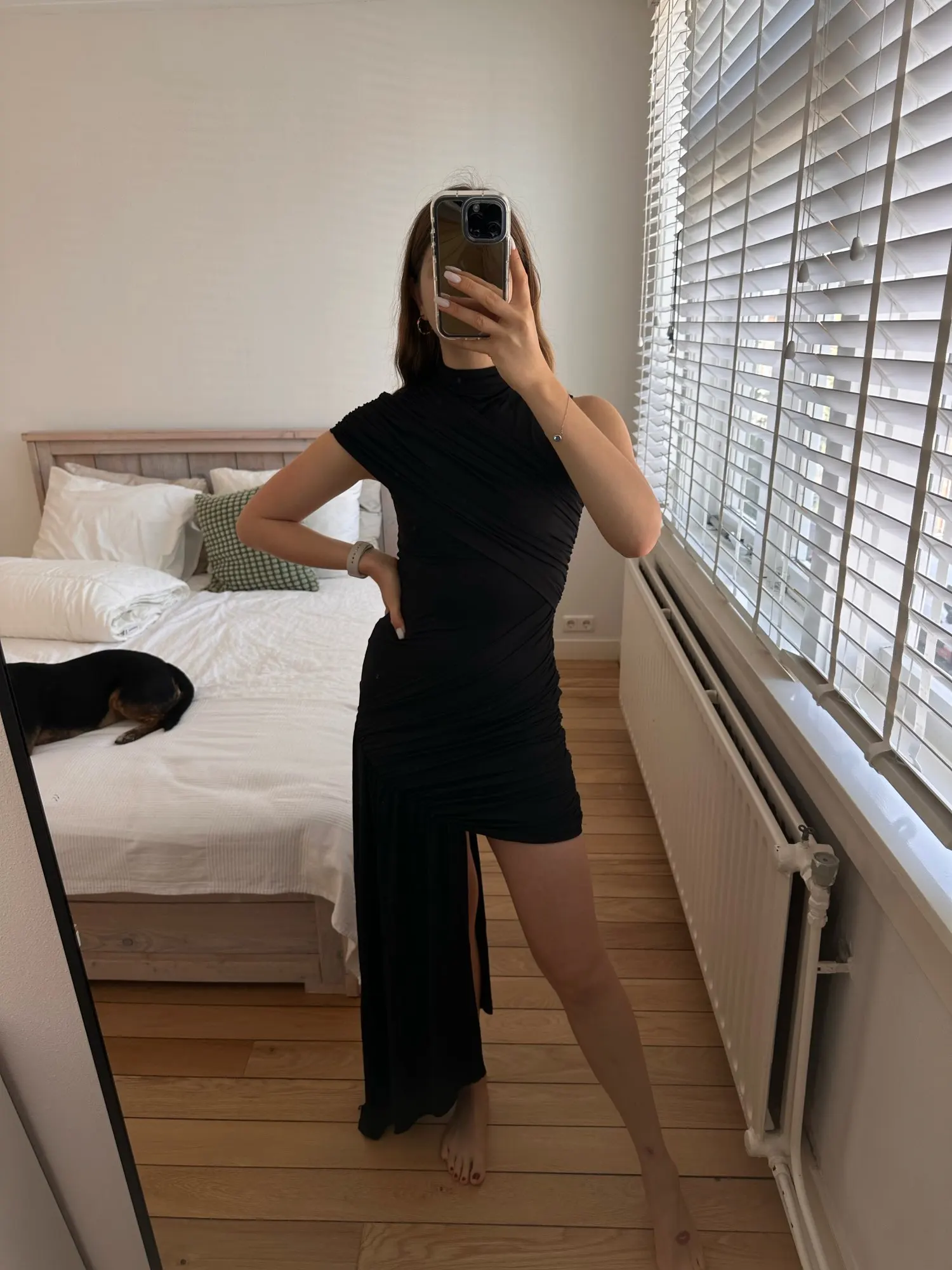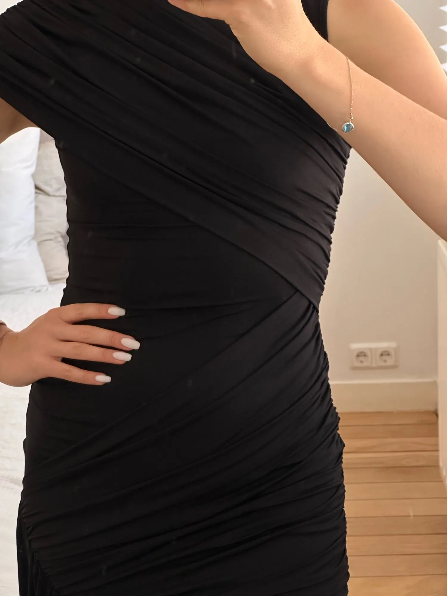 This Draped Hem Mini Dress is designed with a clean silhouette and a refined finish. Perfect for the holidays and stylish gatherings